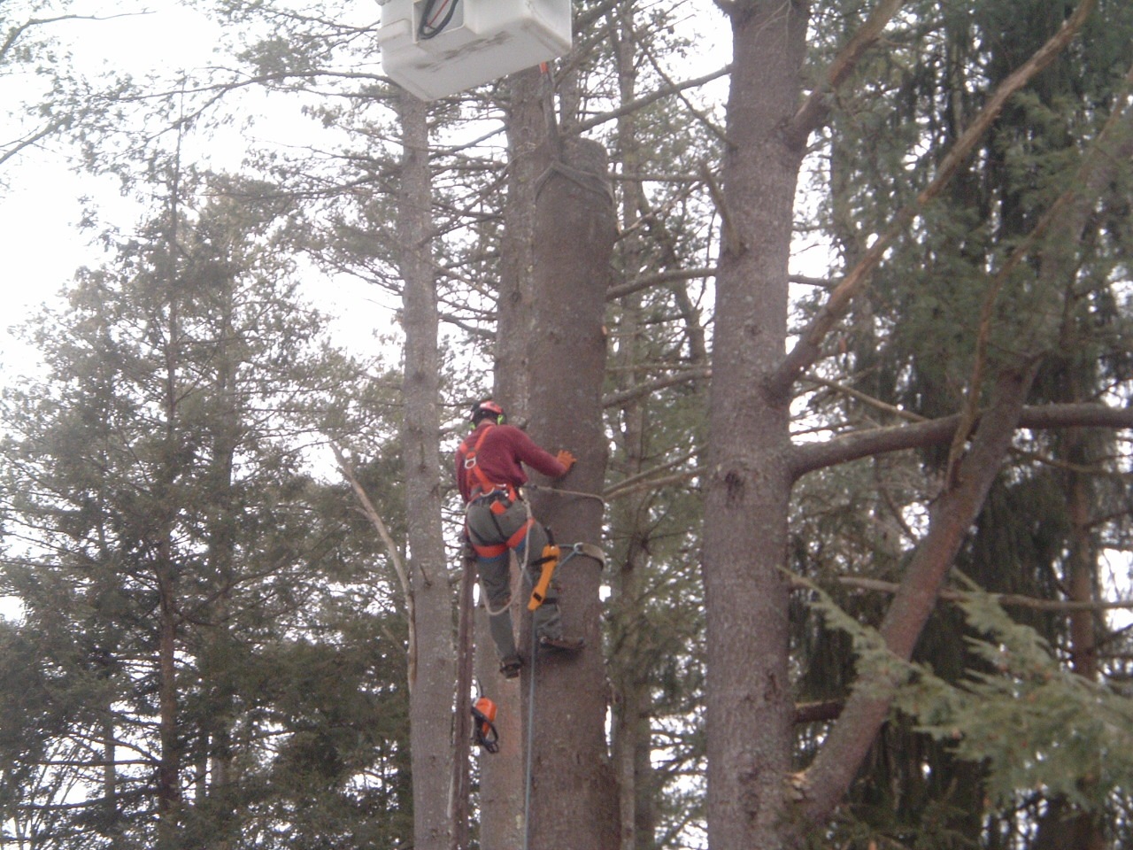 We still do tree care including pruning, planting, fertilizing, insect and disease control. Large tree removals are now limited as time allows. Our specialized 85 foot lift has worked out great for removing trees. It can lift several thousand pounds, even at full height.
